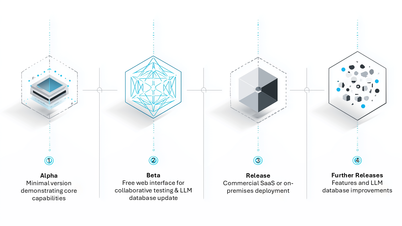 Beta Phase – Accessible via a web interface, designed to collect real-world data from institutes and organizations willing to train the software on their own IP. This phase emphasizes collaborative testing and refinement.